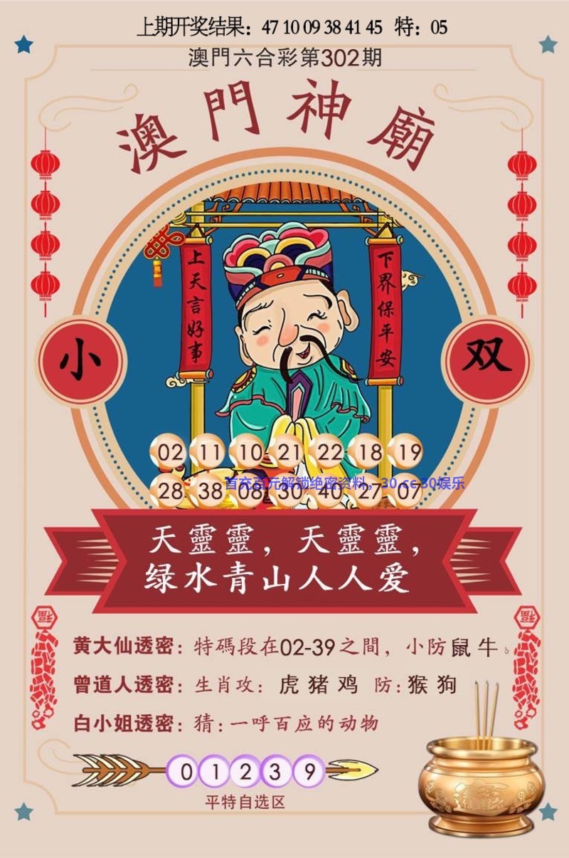 307期:五福临门 【⒓码出特】 已公开